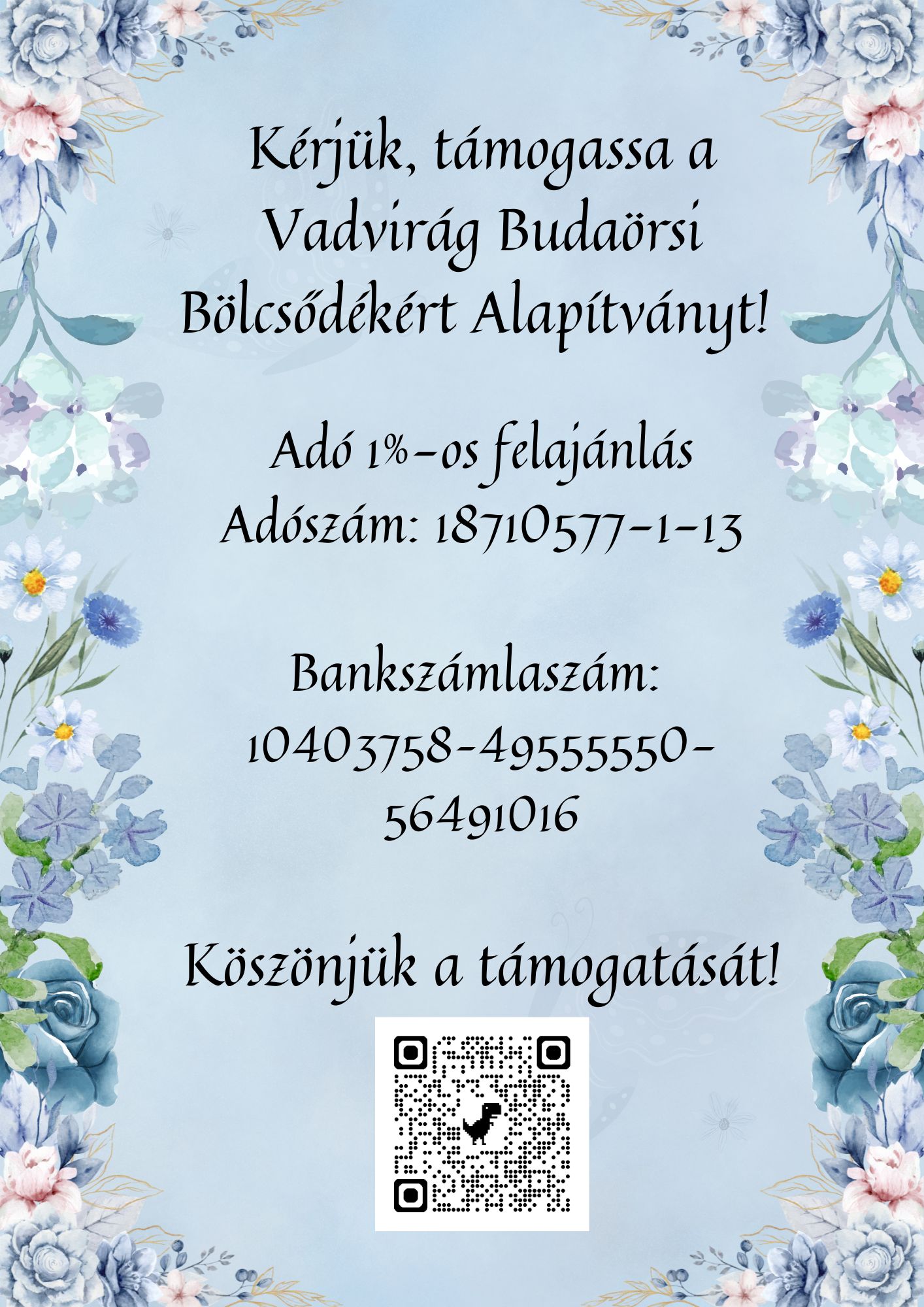 Kérjük, támogassa a Vadvirág Budaörsi Bölcsődékért Alapítványt az Adó 1%-os felajánlásával!